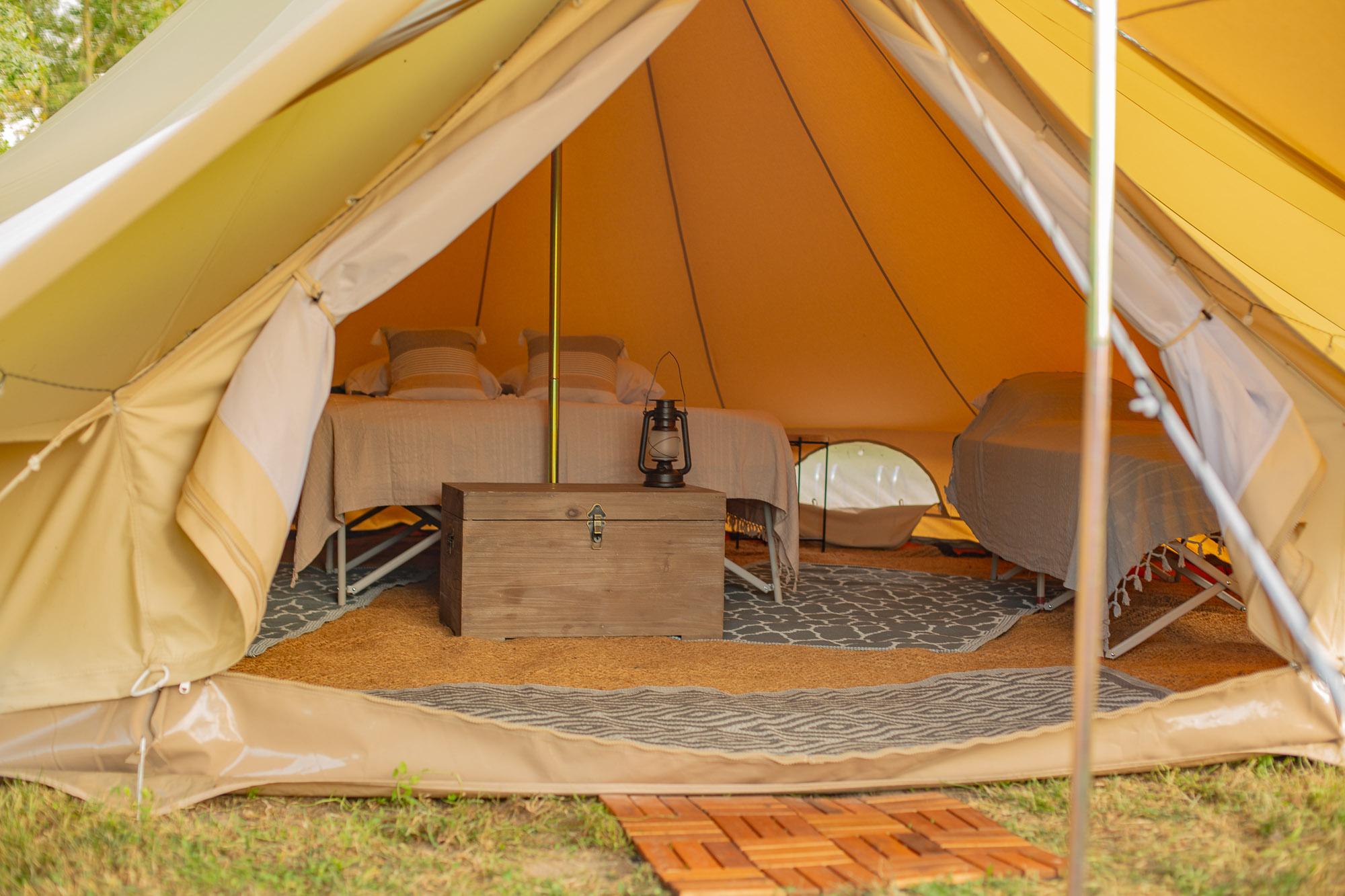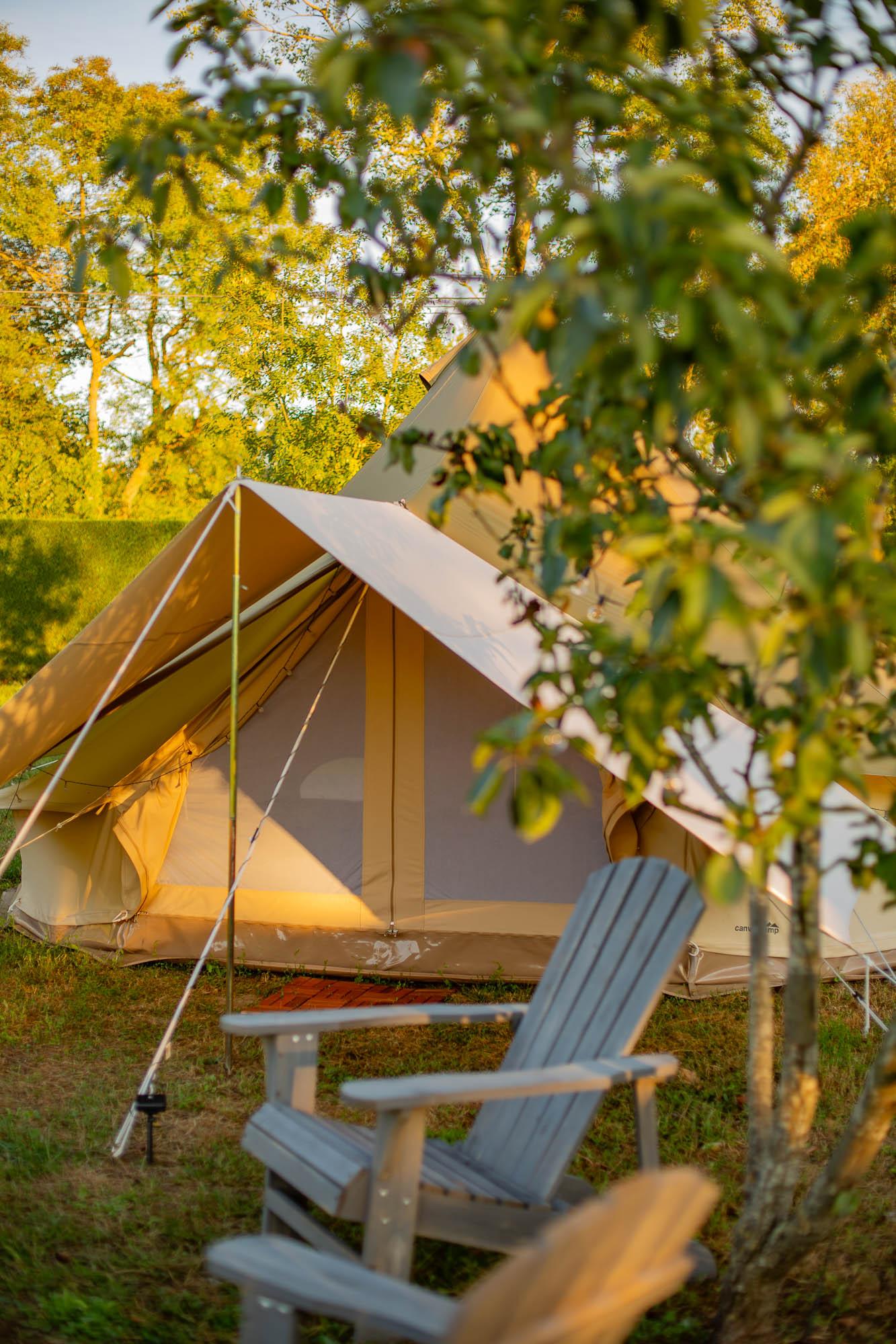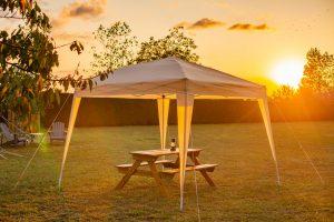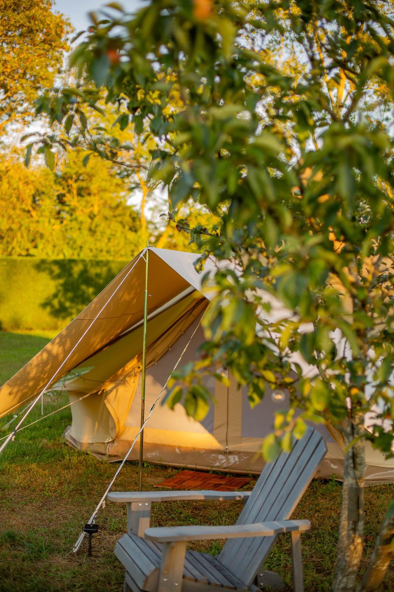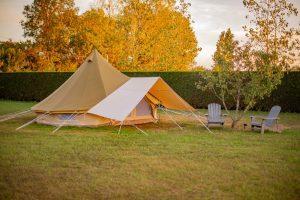 Même en pleine nature, bénéficiez de sanitaires, douches, et toilette sèche à l’extérieur de votre tente.
